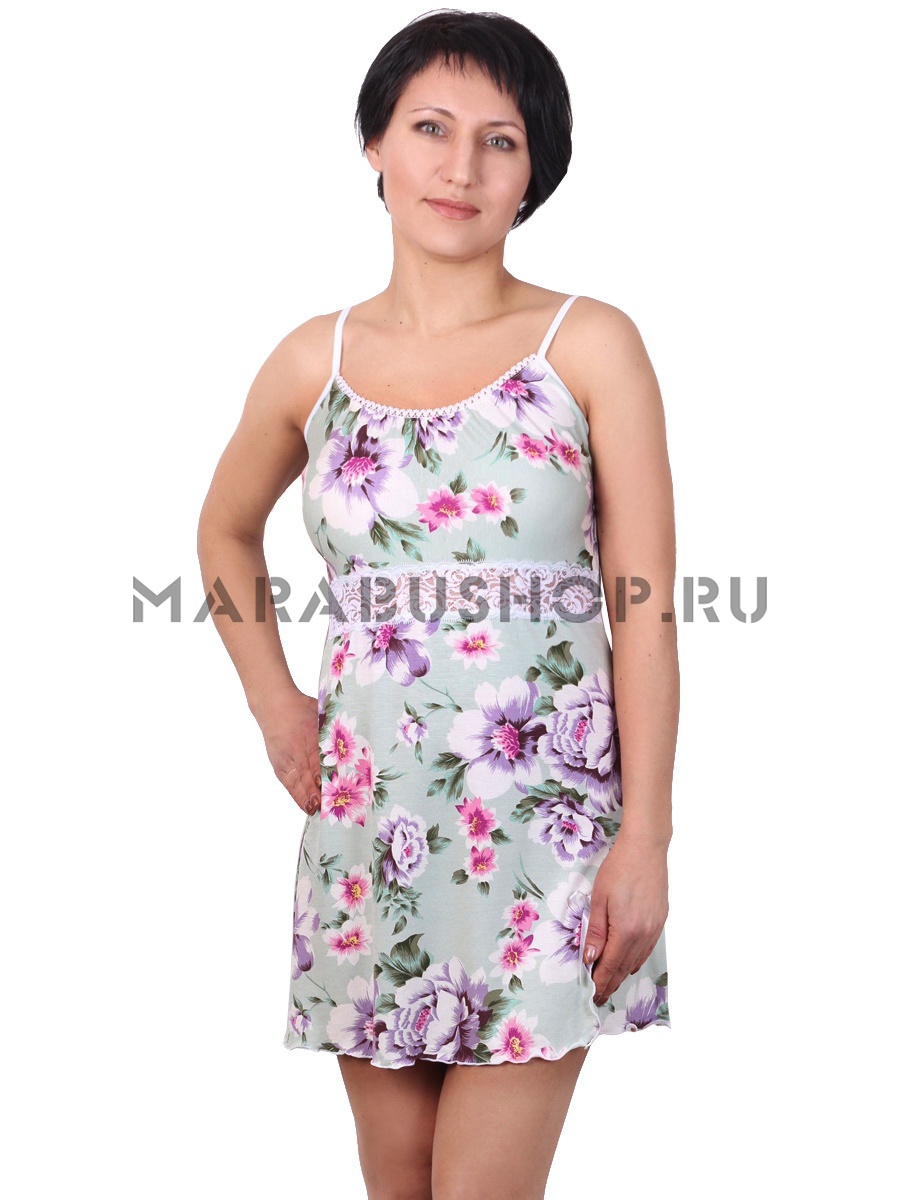 Хлопковая сорочка с разрезом на тонких бретелях.