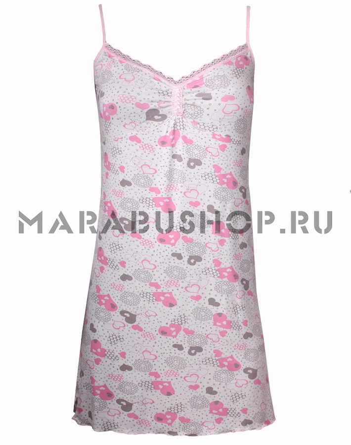 Короткая сорочка на тонких бретелях из высококачественной вискозы с кружевной отделкой.
