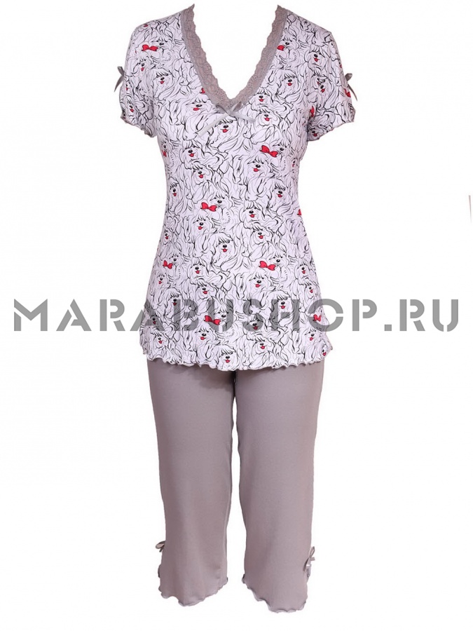 Комплект для сна из высококачественной вискозы: бриджи и кофта с удлиненным рукавом.