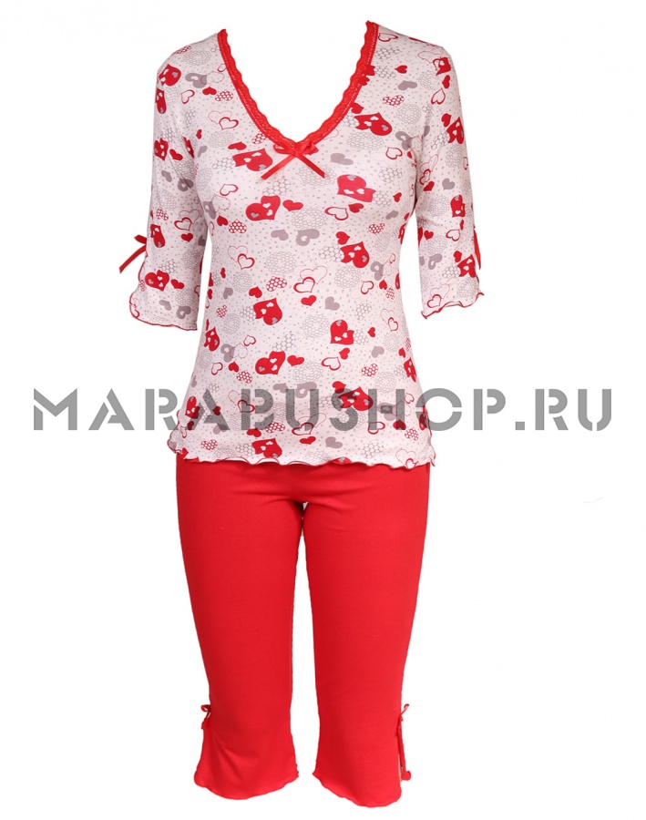 Комплект для сна из высококачественной вискозы: бриджи и кофта с удлиненным рукавом.